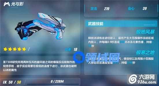 普通攻击破盾瞬间爆发寒气,使目标以及周围小范围敌人移动速度和攻击速度变缓X,持续X秒(X为不确定数值,会随着武器等级和星级的提升发生改变)。