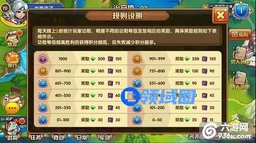 每天晚上10点根据个人功勋发放功勋奖励,可获得大量水晶和技能卡。