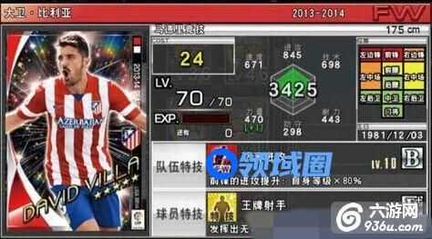 数据显示,比利亚进攻很高,技术速度都是一流水平,但是力量很低。防御几乎没有。
