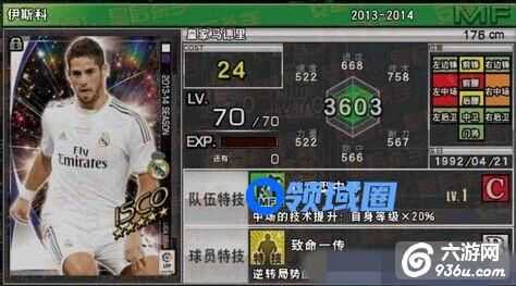 数据显示,伊斯科六维平均。技术稍强,擅长前腰和左边前卫。