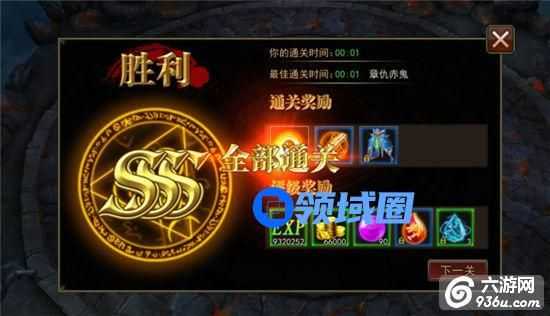 VIP8玩家可以在通关镇魔图后扫荡副本,直接获得奖励;