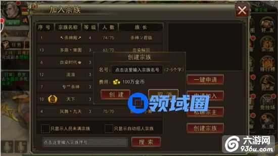 3、自己创建宗族:100w金币 或者300 钻石;