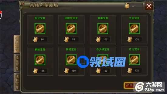 可以使用自己的宗族贡献在宗族商店中兑换宝骨;