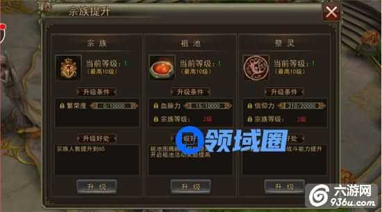 2、祖池图腾:要求宗族等级达到2级,且宗族的血脉力足够才能升级。祖池图腾等级越高,开启祖池活动的奖励就越丰厚;(宗族的血脉力:参加宗族活动就可以获得宗族血脉力。)