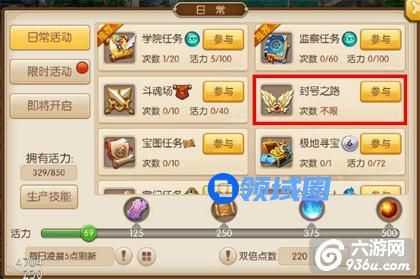 进入方式:【日常】—【封号之路】,每天次数不限,单人参与