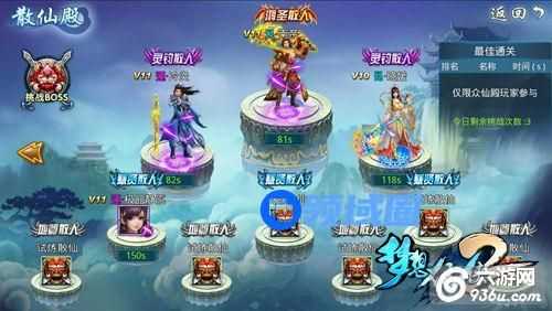 既然有众仙殿,那么自然也少不了散仙殿。和众仙殿一样,散仙殿也是按实力排位的,谁的实力强,谁就能获得最尊崇的称号。不过,在挑战模式上有所改变,众仙殿是直接挑战对手,而散仙殿却是所有玩家挑战同一个BOSS,然后根据成功的时间排名,时间越短,排名越靠前。且在挑战BOSS时也有两种挑战模式:直接挑战和仙灵指路。