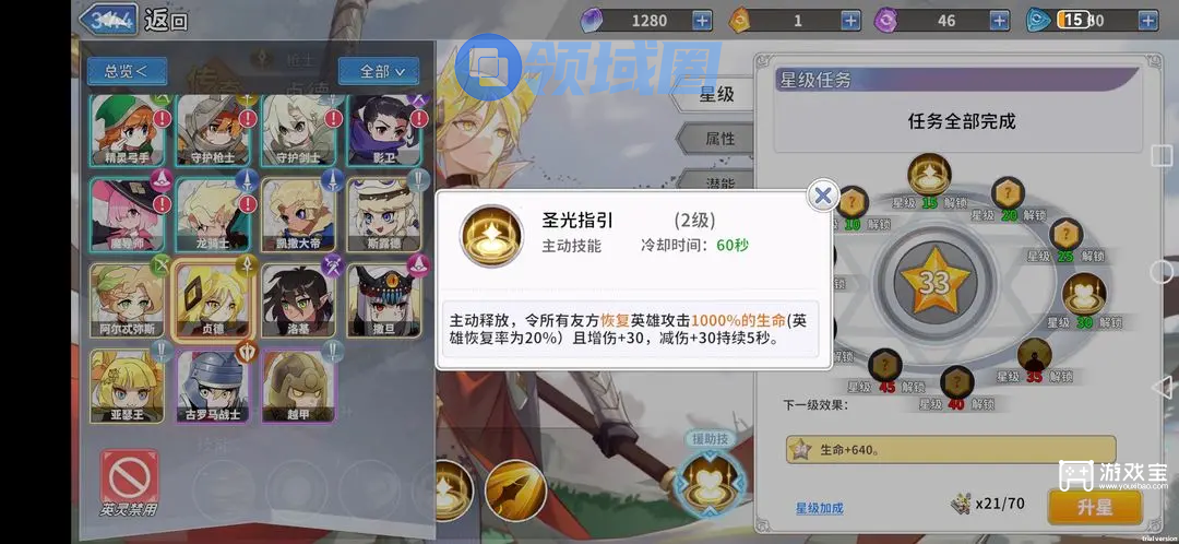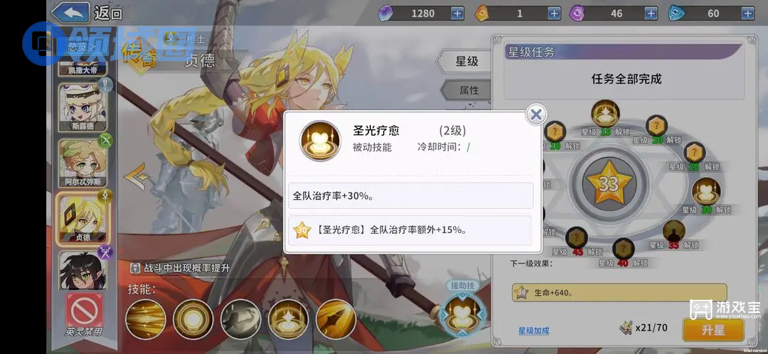 升星能提升全体治疗且贞德技能为打boos主力所以优先建议升星拉满贞德