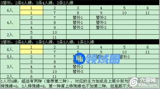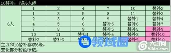 10个替补对应V10+,V10V11只需要所有人都双6人缘即可(特殊4人缘的加成不如6人缘)。