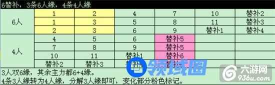 7个替补时,如果之前就按照理想方式组缘,则只需拆一条4人,直接改成6人即可。