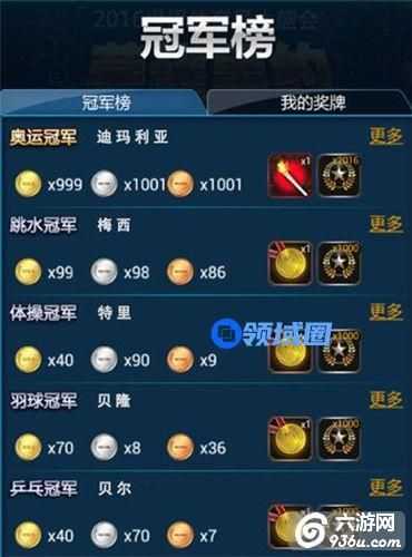 7、最终总金牌最多的经理获得奥运冠军,并获得里约奥运火炬和巨星之证,单个项目金牌最多的经理获得该项目冠军,并获得奥运金牌和巨星之证(PS:排名时金牌数相同则比银牌数,银牌数相同比铜牌数,如铜牌数再相同,单项冠军比总竞技分)。(如图)