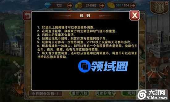 规则很简单,就是派遣英雄上阵挑战对手,挑战过程中造成的伤亡不会恢复,一直持续到挑战完调查路上的所有对手,所以如果要通关壁外调查,那么恢复型的英雄一定必不可少了。