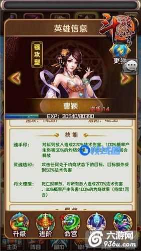 妖女曹颖出场属性既是最高级别橙卡,属于强攻型法术英雄,其拥有三个强大技能,魂手印、灵魂烙印和丹火燎原。在战场上当使用魂手印时,将会对纵列敌人造成220%的法术伤害,有100%概率产生伤害50%的灼烧效果;灵魂烙印,当妖女攻击任何处于灼烧状态下的目标时,目标会额外受到50%的法术伤害;丹火燎原,是在妖女死亡时释放,将会对所有敌人造成200%的法术伤害,90%概率产生伤害100%的灼烧效果。