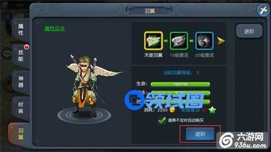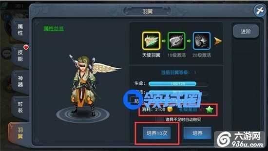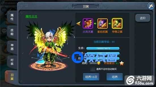 当该等级的羽翼培养完毕后,点击进阶即可给羽翼进阶故提升羽翼等级
