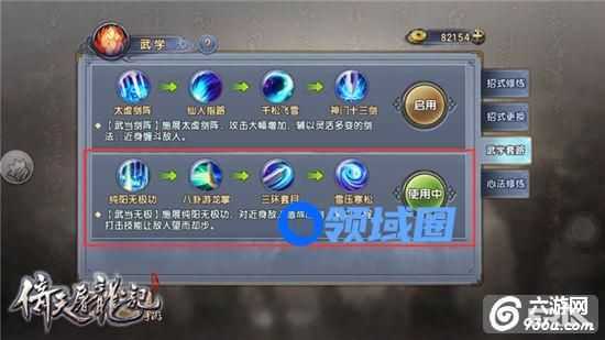 各位侠士在启用武学套路时可看到,【武当剑阵】套路是以施展太虚剑阵来增加攻击力,再辅以灵活多变的剑法来近身缠斗敌人。