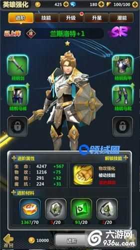 【已获得的英雄】显示为彩色,头像旁展示了每个英雄的战力和拥有的碎片数量。点击每个英雄框可以进入对应的英雄强化界面。英雄强化界面包含了英雄升级、进阶、升星、潜能、技能升级五大部分,强化各英雄将大大提高玩家的战斗能力哦。