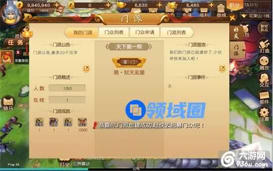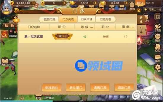 在门派界面中,既可以查看所有门派信息(如没有参加门派可在此界面进行门派加入申请)