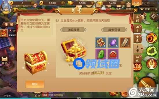月光宝盒是一个神奇的宝盒,只要购买了,就可以每天都在月光宝盒中领取丰厚奖励,可以连续领取一个月哦!这里的奖励可不是普普通通的道具,甚至连绑定的元宝都包含在内,性价比价值超高哟。而且,开服活动中会奖励月光宝盒折扣卡,使用了折扣卡,在购买月光宝盒的时候还会打折哦!