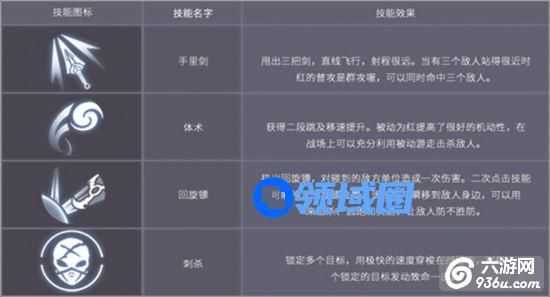 手里剑(普攻):甩出三把剑,直线飞行,射程很远,点击即可释放。当有三个敌人站得很近时,红的普攻是群攻喔,可以同时命中三个敌人。
