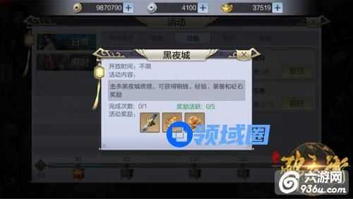 一个神秘的地方,在这里完成击杀怪物的任务挑战会获得大量经验,此外击杀黑夜城统领还可以获得铜钱、经验、装备和砭石等奖励。