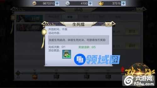生死擂台的挑战目标是游戏中的仇人,玩家可以在擂台上与仇人来一次公平的较量,发起者需要消耗一定数量的元宝。挑战成功可以获得一级宝石袋*3,失败的话则会获得1级宝石袋*1。