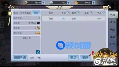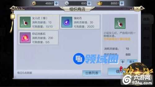 玩家们可以通过组织任务和捐献等方式获得组织的贡献值,在组织的专属商店中购买女儿红、强化石和印记洗练石等特殊的道具。