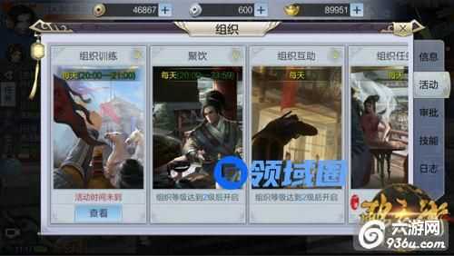 每一个组织都有相应的活动,在组织训练、聚饮、组织互助和组织任务这一系列活动,玩家可以通过这些活动获得大量经验和组织贡献值。