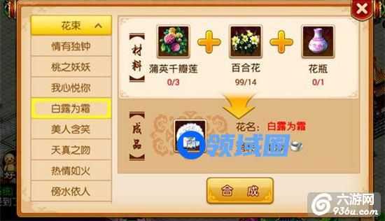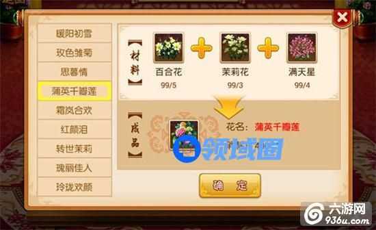 通过多个2级鲜花和1级鲜花合成,在“御花园”花房中的插花按钮打开插花界面;