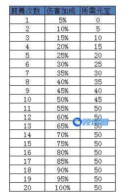 “鼓舞”: “鼓舞“具有伤害加成作用,通过点击”鼓舞”可以直接帮助小主增加伤害值,此外,首次点击鼓舞可是免费的哦!