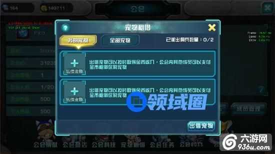 宠物租借可以出借自己的宠物给其他成员使用或者借用其他成员出借的宠物,金币收入会在宠物回归后获得,详细规则可以点击说明按钮查看。