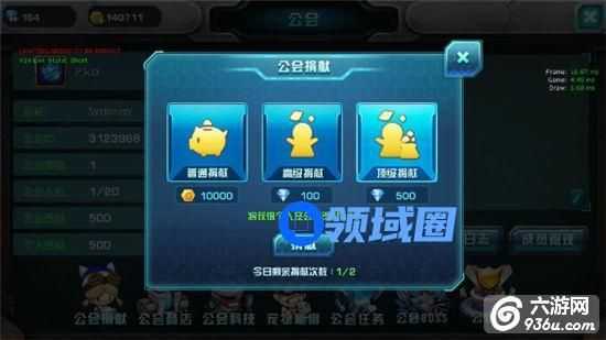首先先介绍一下公会捐献,每天每位成员可以花费金币或钻石为公会捐献金币或者钻石换取贡献值。