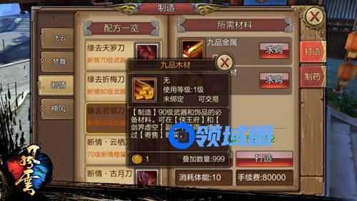 点击左上角人物头像,进入“制造”界面。四大门派都可以在这里制作出相应等级的装备。制造装备所需的材料也都从副本中产出。