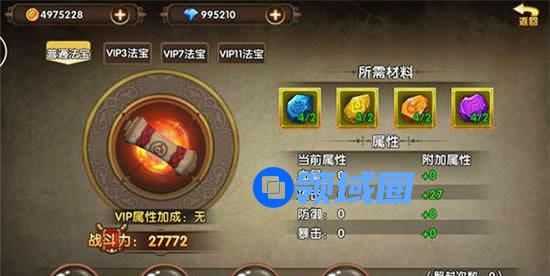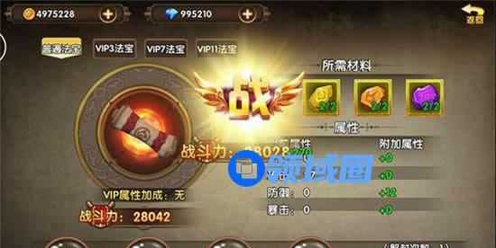 达到vip3、vip7、vip11后,还会解锁对应的vip法宝,获得额外的vip属性加成,点击对应VIP法宝可切换穿戴的法宝!
