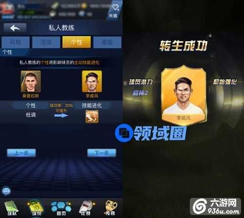 通常,私人教练的个性影响会影响主动技能分支的二次进阶,低调为3号分支可能进阶,腼腆为2号分支可能进阶,狂妄为1号分支可能进阶;流派则影响额外等级,南美最佳、欧洲其次、最后为拉美私教;风格则影响提升,保守适合后场,稳重适合门将,激进适当前场,混合为前后场通用;至于星座嘛,则是觉醒最高概率的时间点,每小时会有变化,在最高成功率时间段转世,则更容易玄学出高属性哦。