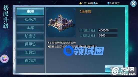 主殿:可以管理各个建筑,选择是否消耗资金来建设或升级指定建筑。主殿等级代表帮派等级,且主殿等级决定其他建筑的等级上限。
