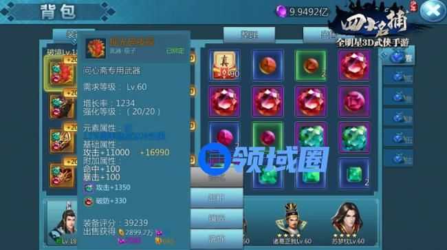 看到这把武器上镶嵌的玉石了吗?玉石在装备以及战斗力系统中占比是非常大的,镶嵌一个高级玉石可获得大量的提升,当然高级玉石也是通过低级合成来铸造的,每个少侠都有机会获取高等级的玉石,需要耗费一定的时间去铸造。