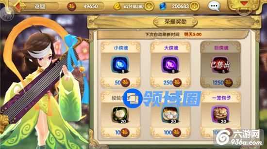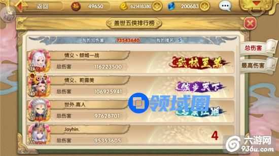 3、每天对五侠伤害最高的玩家,可以获得排名奖励,第一名可以获得4000荣耀值。