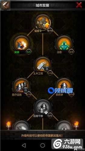 开始特别要注意的就是学院。首先把学院升到6级,技能研究制图学,这样你就能升级军团技能了。能多派一支部队出征。