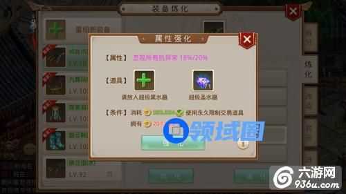 装备强化也是锻造专属神装的重要一环,装备强化能够提高装备属性值,但需要消耗1颗相同等级相同属性的超级黑水晶以及1颗超级圣水晶。强化失败后仍然会增加强化完成度,且不消耗超级黑水晶。