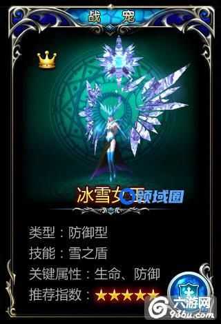 冰雪女王作为所有玩家获得的第一个战宠,有着出色的防御能力,是游戏前期最为出色的肉盾之一。冰雪女皇的技能