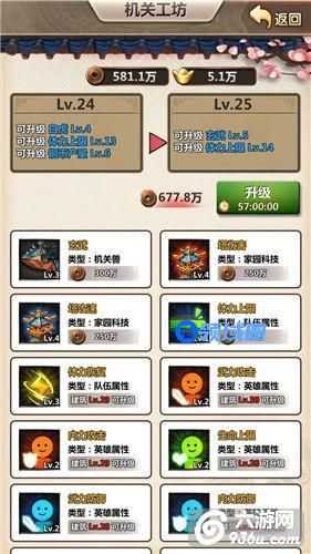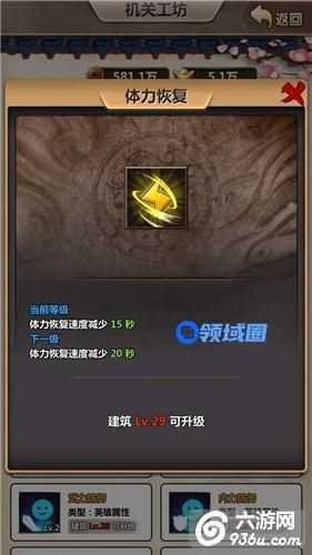 体力上限跟体力恢复也不是很建议升级,这里有一点需要注意的是,机关工坊升级升级是跟等级挂勾的。如果你的等级跟不上,家园有空余的建造时间可以考虑升级这2点。