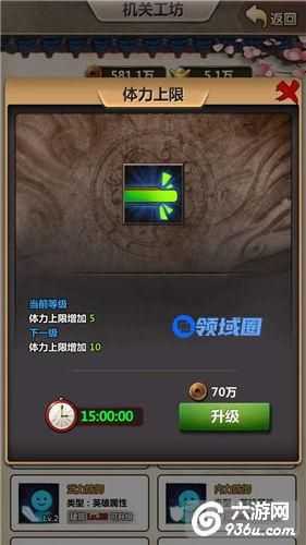 尤其是,这是所有英雄属性加成哦!是不是很猛?可惜升级限制等级,楼主我只有73级不能升机关工坊了,所以呢?同学们,这个手游玩的就是先升级,体力很重要有没有?禁地有些关卡给经验丹跟铜币的先不用刷,体力留着刷战队等级哦。