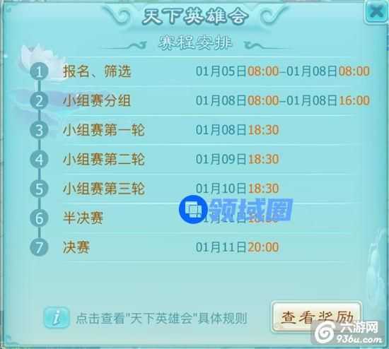 9、天下英雄会的参赛队伍、分组情况、比赛进程、比赛时间均可在开封慕容紫英处查看,请留意时间,不要错过比赛。