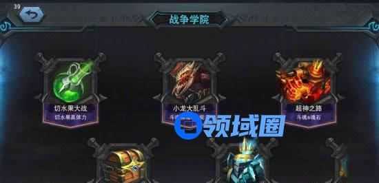 在完成任务的同时,我们可以通过战争学院中的战斗来获得海量金币、钻石、精魂、斗魂、材料、符文、符文碎片等。战争学院中共有5个板块:抢夺金币、小龙大乱斗、探险寻宝、捕捉逃犯、符文争夺。不同模块可以获得不同的战利品。