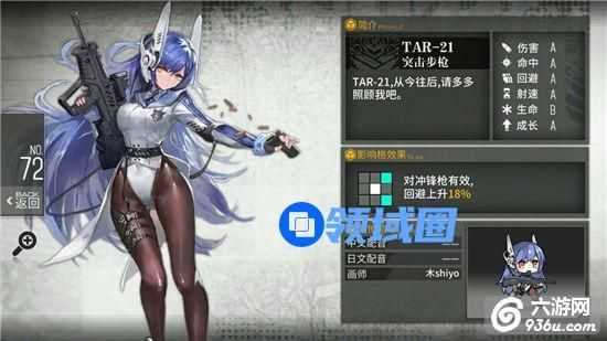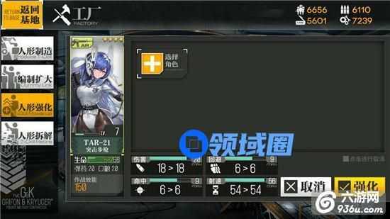 举个例子,像下图中的四星人形TAR-21,她的当前伤害属性值是18,通过强化最高可以提升到20。当TAR-21升级后,伤害的强化上限可能提升到22(只是打比方,不是游戏里的实际数值)。如果是另一个成长更高的人形,这个上限可能会提升到25。所以,成长越高的人形,后期完全强化后的战力就越强。当然,要强化这些人形是需要材料的。