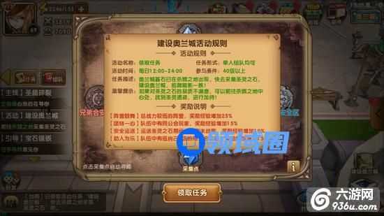 在主城点击右下角“建设奥兰城”图标或在活动中“建设奥兰城”活动栏点击前往后,在弹出的地图页面点击“领取任务”即可成功领取任务。