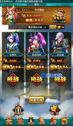 当然,以上所说的排名和奖励产出,两者是直接挂钩的,排名越靠前,奖励越丰富(这想必应该不要我交待了,地球人都知道),所以争得个好名次很重要。擂台对决前,系统会为玩家匹配出4个对手,其中3个比自己排名靠前,1个比自己的排名靠后。当然大家可别盯着自己后面的哥们,正所谓人往高处走,每天的挑战次数有限,若总喜欢虐排在后面的人,只会让你的排名有退无进。若是匹配出的对手让你不满意,可以点击“刷新目标”,直到匹配出让你满意的为止。