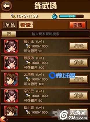 《比武招亲》IOS正版练武场当中,玩家之间的单挑就是在玩家所处于的等级区间段的地方,玩家自行寻找进行比武PK的对象。有不少的玩家对等级区间有要求呢?其实,这个规定保护了等级相差较大的玩家之前不会碰上,免得以大欺小。何为练武场宿敌?在《比武招亲》当中,所谓的宿敌就是玩家之前单挑过的对手并且玩家没有获胜的,如果你又这样的对手存在,那么记得在自己等级提升之后让他血债血偿!