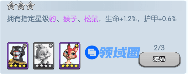 拥有指定星级豹、猴子、松鼠,生命+1.2%,护甲+0.6%