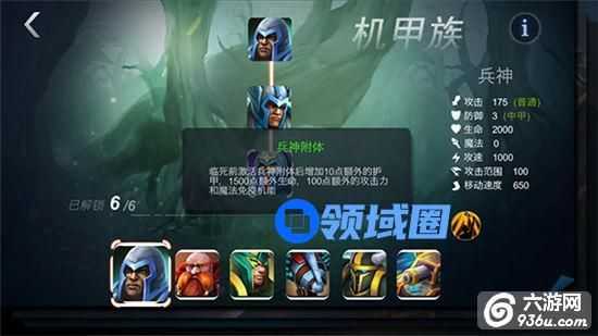 技能:兵神附体(临死前激活兵神附体后增加10点额外的护甲,1500点额外生命,100点额外的攻击力和魔法免疫机能)