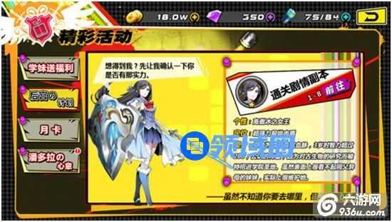 点击每个小章节,便进入了副本的简介界面。简介界面显示了该副本的主要怪物,掉落的道具,以及消耗的体力。注意看主线副本的掉落和体力的消耗,有目的的刷主线副本可是一门大学问哦~